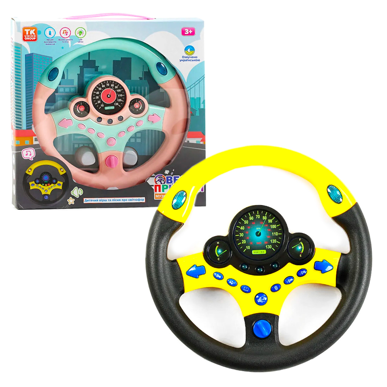 Кермо “Веселі пригоди” "TK Group", жовто-чорне, українська мова, пісня, віршик, звуки, підсвічування (23554)